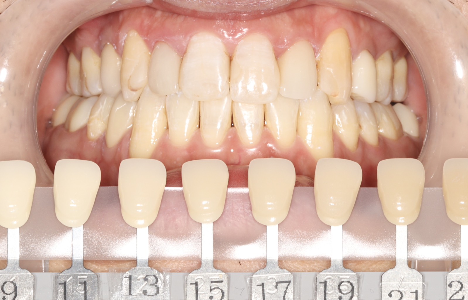 トランセントフラッシュホワイトニング1回照射(10分)の症例(治療前) トランセントフラッシュホワイトニング1回照射(10分)の症例(治療後)